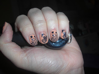 vernis corail fluo .3 couches et une de crackle noir et 2 couches de seche vite .